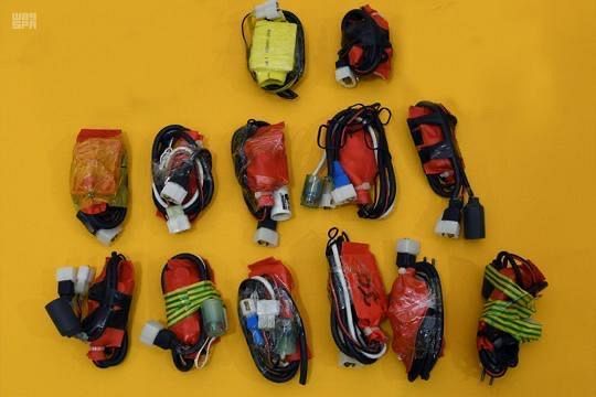 4 ـ مجموعة كبيرة من المكثفات ومحولات كهربائية ومقاومات إليكترونية تستخدم في التشريك وتصنيع المتفجرات.